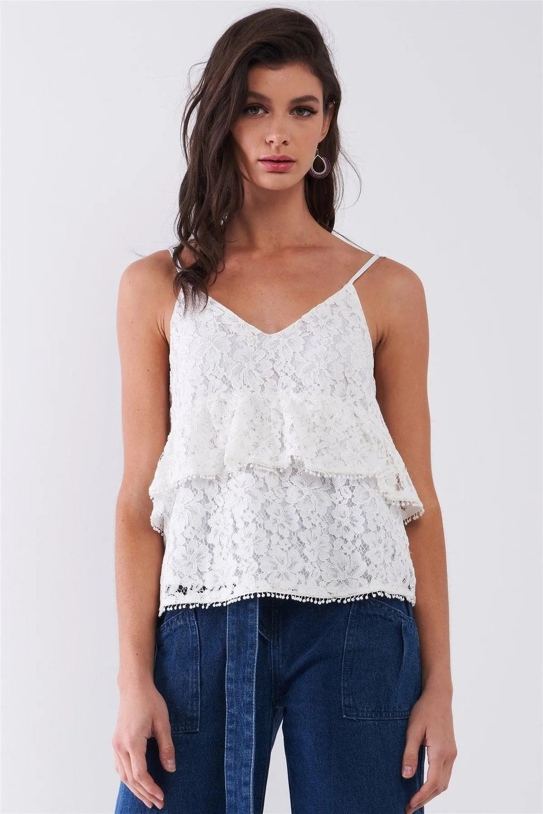 White Floral Crochet V-Neck Relaxed Cami Top
