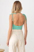 Mint Green Round Neck Sleeveless Low Back Thong Bodysuit