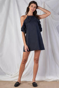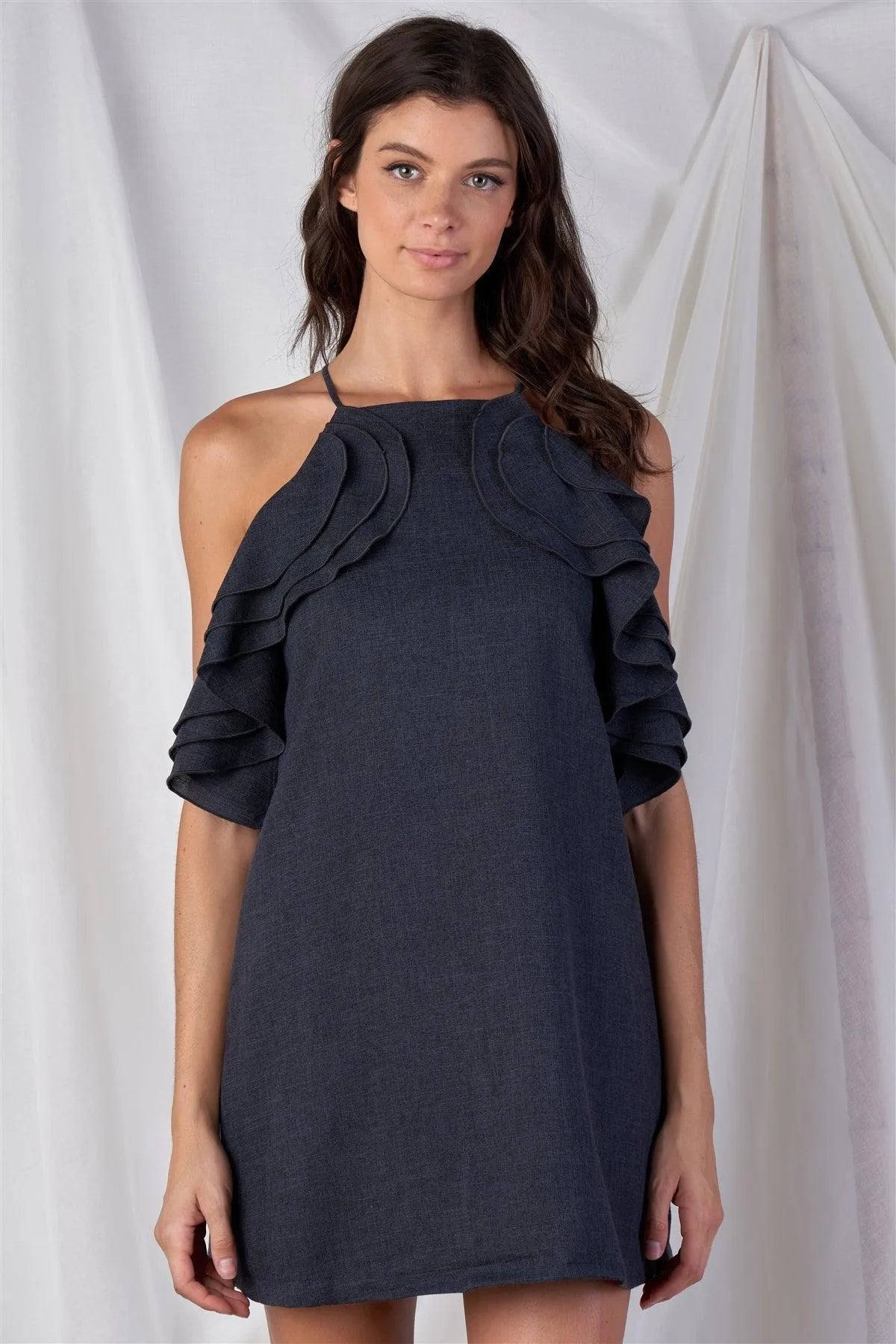 Solid Dark Grey Off-Shoulder Triple Ruffle Hem Cami Mini Dress