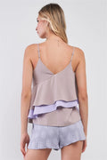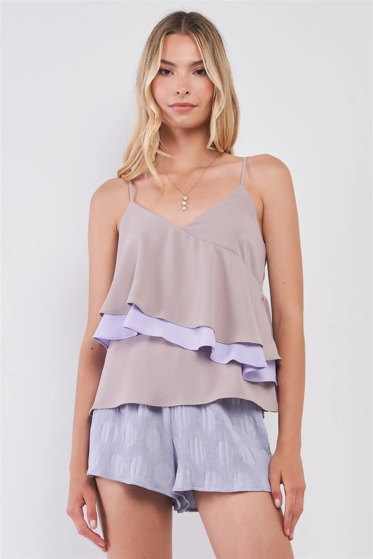 Grey & Lavender Asymmetric Layered V-Neck Flounce Cami Top