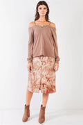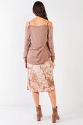 🖤 Item Features: Mocha brown, solid color, off-the-shoulder long sleeve, adjustable stretchy shoulder straps, lace trim detail, sweetheart neckline, unlined, stretchy, not see through, relaxed fit, casual, cute, fall/winter collection.