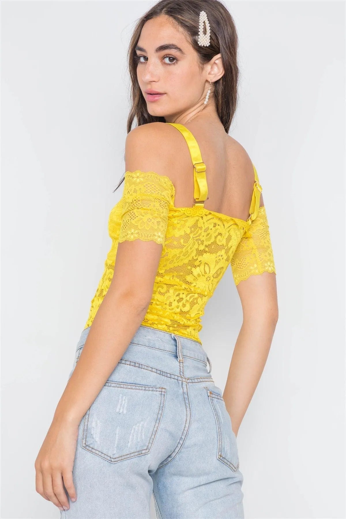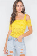 Yellow Floral Lace Off-Shoulder Cami Bodysuit