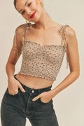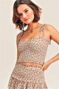 Vintage Floral Print Smocked Tie-Strap Cami Crop Top