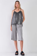 🖤 Item features: Silver-black, metallic imitation, glossy finish, soft v-neckline, sleeveless, adjustable shoulder straps, gathered, loose fit, lined, stretch, disco look, party, night-out