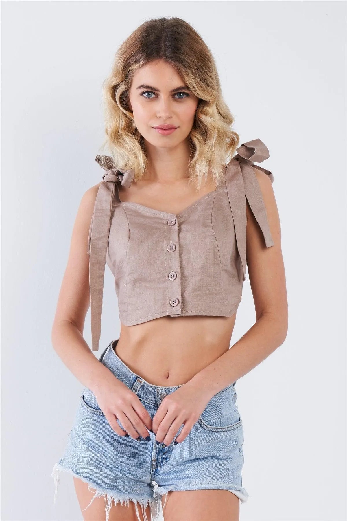 Taupe High-Low Hem Self-Tie Shoulder Strap Cami Top