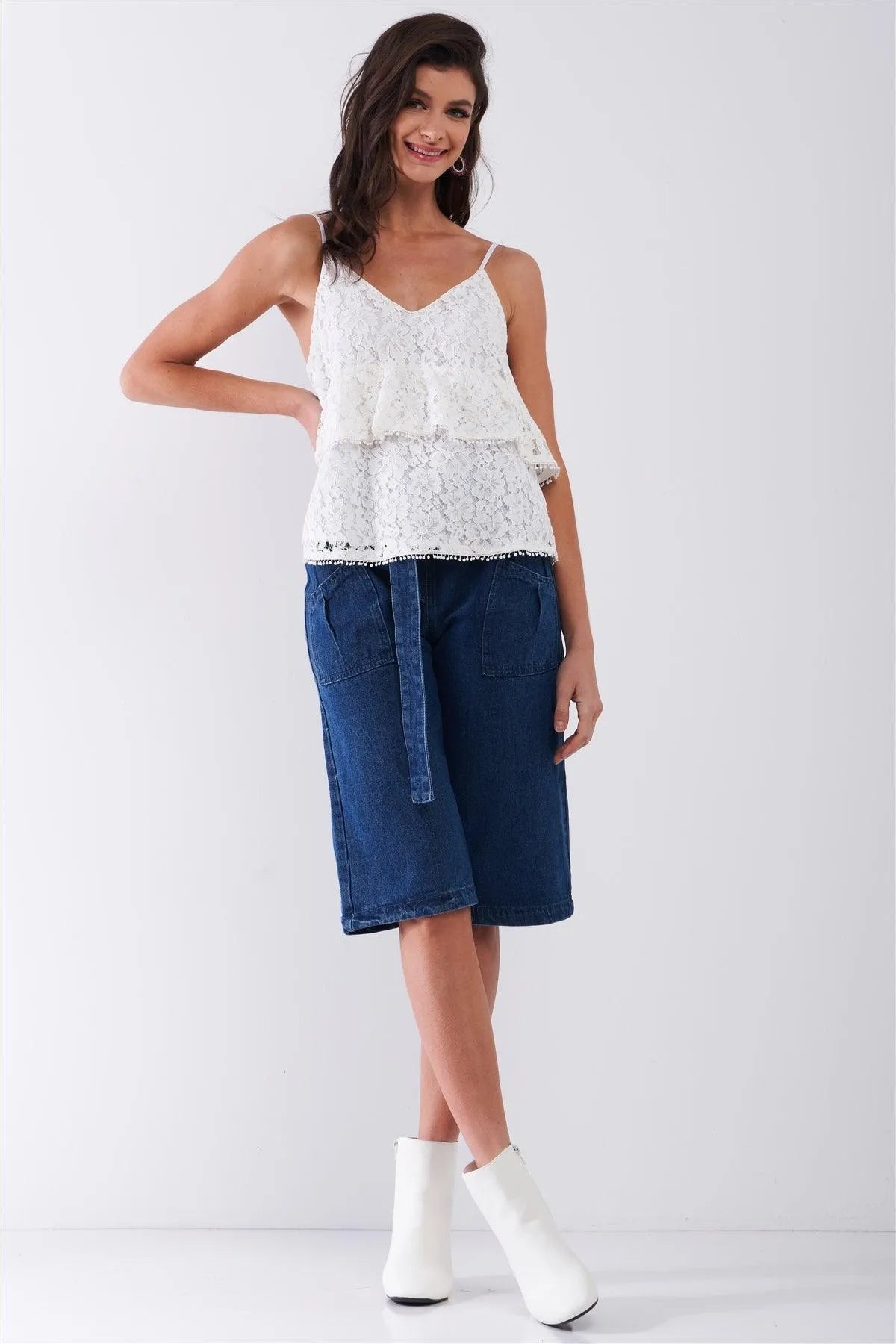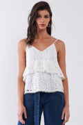 🖤Item Features: White, solid, floral crochet, sleeveless, adjustable shoulder straps, V-neckline, round backline, layered, knit bead trim hem, lined, non-stretch, relaxed fit, casual, cute, breathable, spring/summer