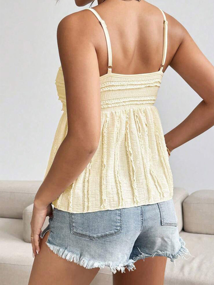 Yellow Ruffle Pleated Cami Top – Summer Flowy Cute Tank Top for Women S-XL